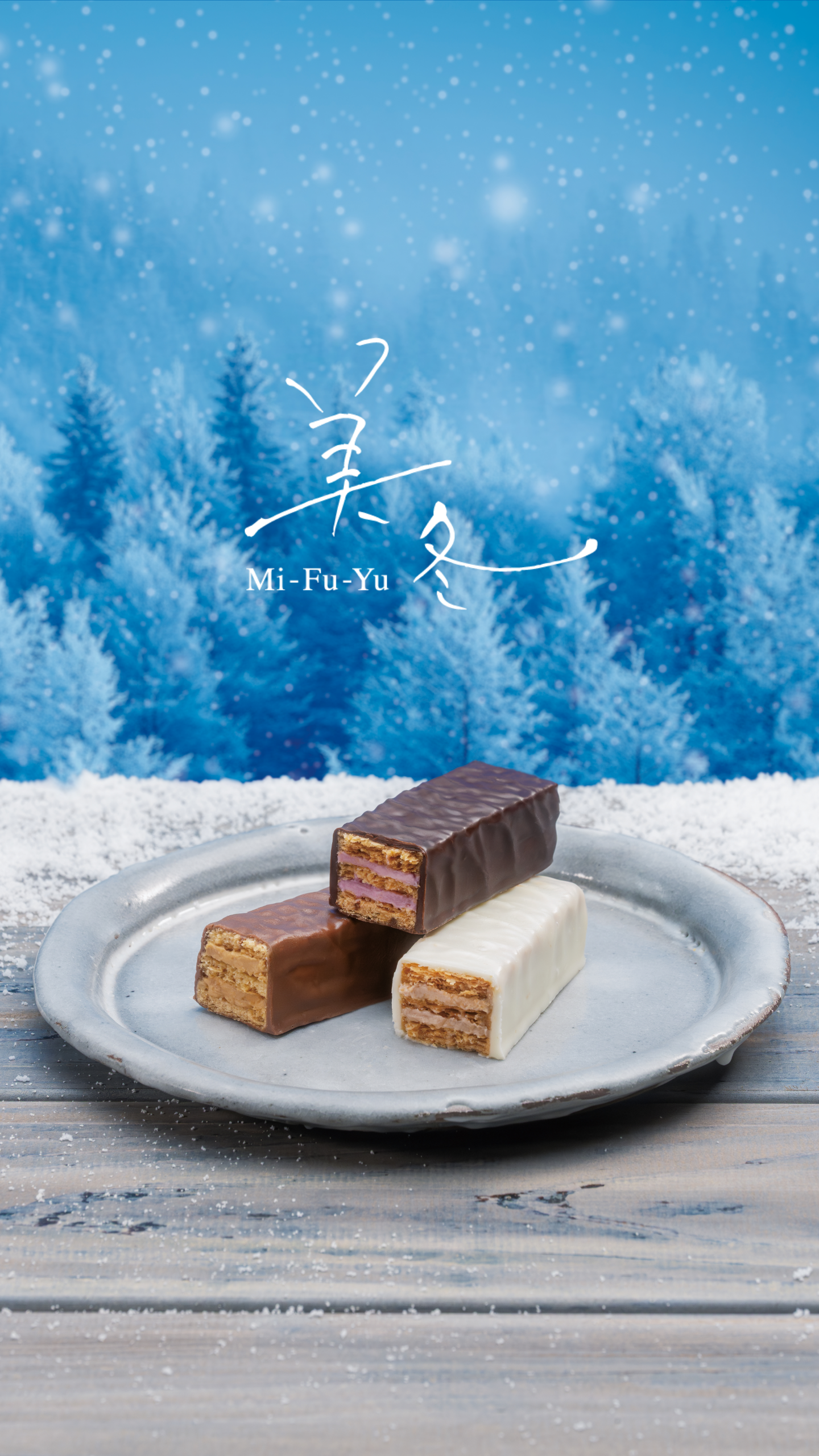 ブルーベリー、キャラメル、マロン、3種の味が一箱に詰まったミルフィーユです。